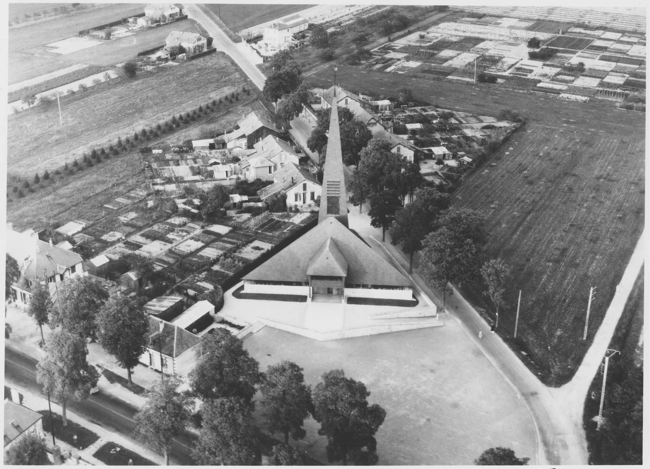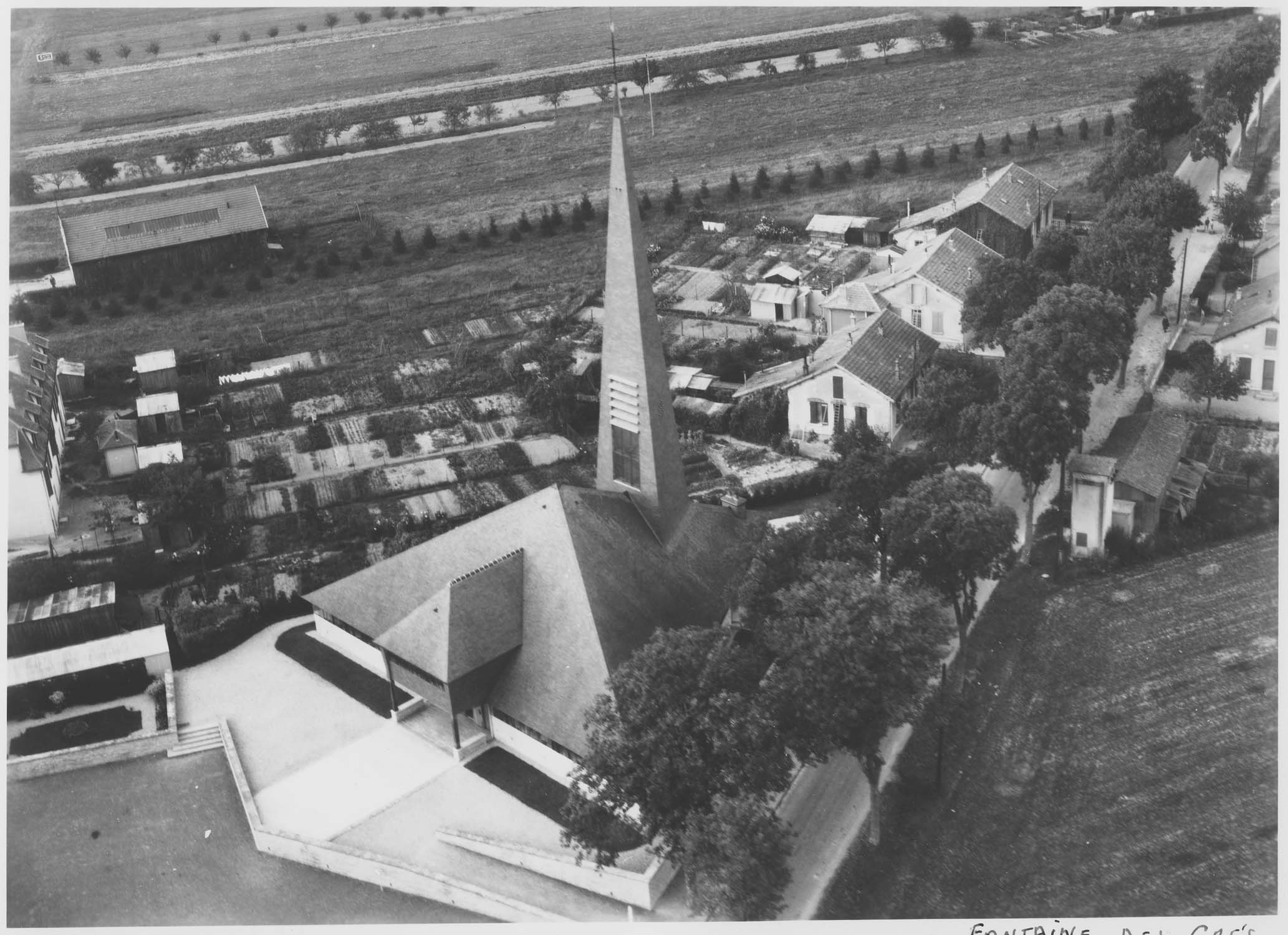 L'église fut bâtie en 1956 par l'architecte Michel Marot, premier grand prix de Rome en 1954. L'édifice respecte un plan triangulaire. Son architecture fait cohabiter deux styles, à la fois celui des granges traditionnelles de l'Aube avec sa vaste toiture en tuiles plates et sa flèche en ardoise et celui caractérisant les réalisations modernes de l'époque, notamment avec son espace intérieur lambrissé de grande dimension, les sculptures en céramique d'André Dienis et les vitraux composés de panneaux de verre industriel ondulés peints par Jean-Claude Vignes.