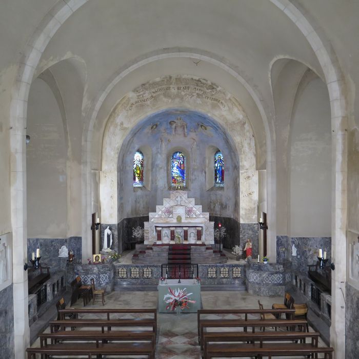 Le programme est de redonner aux paroissiens l'église perdue. Cambiès n'innove pas pour l'aspect extérieur : il prend le parti de s'inspirer de l'architecture régionale et d'utiliser le plan traditionnel à croix latine. L'aspect extérieur des moellons de granit est contrebalancé par l'utilisation du béton, grande nouveauté de cet édifice rural, construit sur des fondations censées être inébranlables de 7 m. A l'intérieur, dans la droite ligne des Ateliers d'art sacré et des Chantiers du Cardinal, tous les arts sont appelés à concourir à la beauté de l'édifice malgré sa simplicité : peinture monumentale, sculpture, vitrail, entre tradition et modernité. Dominent formes épurées et angles droits du répertoire de l'Art déco, popularisé par l'Exposition Internationale des Arts décoratifs de 1925. La commande de tous les objets du culte en 1934 constitute un exemple assez rare de cette période dans l'Aude, protégés au titre des Monuments historiques (CDOM du 10 décembre 2015). Les aménagéments liturgiques n'ont pas été modifiés.