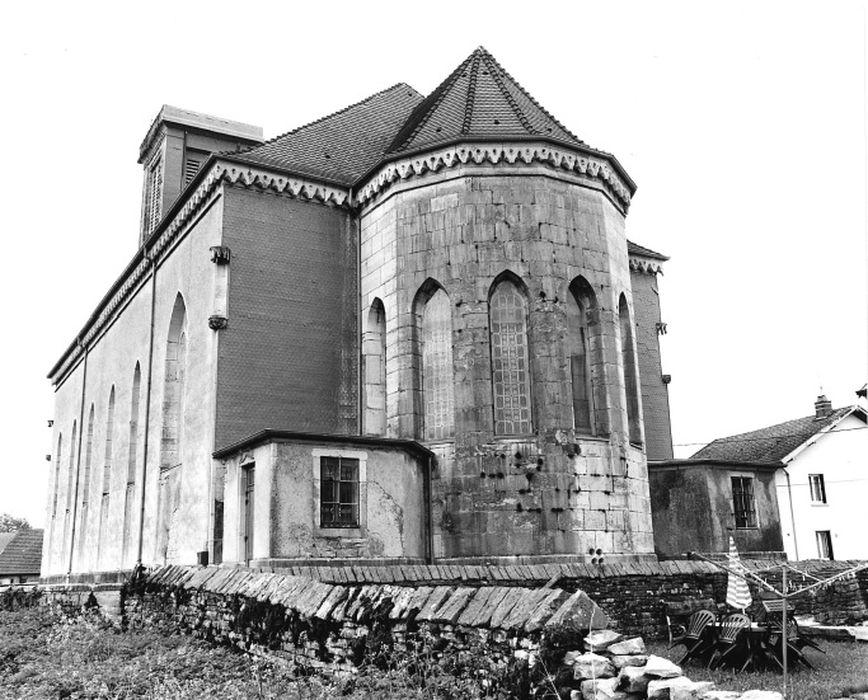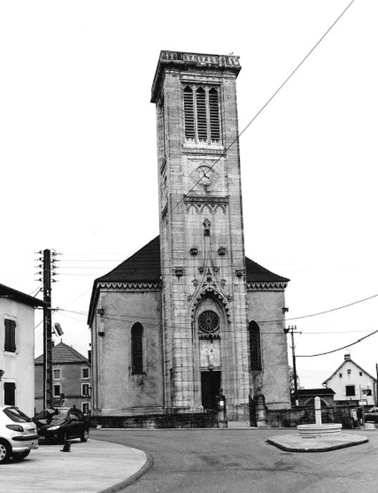En 1842, un nouvel édifice vient remplacer une construction plus ancienne, sur les plans de l'architecte Alphonse Delacroix. Les travaux sont réalisés de 1844 à 1854. L'édifice réinterprète les formules très utilisées au 18e siècle, en Franche-Comté, comme l'église-halle précédée d'un clocher porche hors uvre, mais avec l'emploi d'un vocabulaire néogothique. Composé de trois nefs de cinq travées, plus celle du chur, et d'une abside à sept pans entre deux sacristies, l'édifice est couvert de voûtes sur croisées d'ogives à la nervuration continue, de la base des piliers aux clés pendantes. Le clocher est orné d'un décor sculpté avec gables, niches à dais, baies trilobées et écrans d'horloges. Un mobilier est spécialement conçu pour l'église.