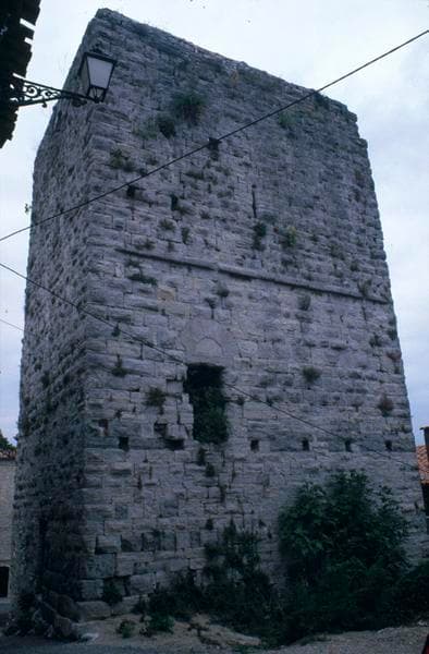 L'ancien château et la tour donjon ont dû être construits par les Bermond de Sauve, vassaux du comte de Toulouse, dont les biens ont été annexés à la couronne en 1243. La partie dévolue au roi fut cédée à l'évêque de Maguelone en 1293, qui la vend en 1570. A partir de 1600, les seigneurs habitent une grande maison dans la grande rue alors que le château féodal est appelé "château vieux". Ce dernier est vendu en plusieurs lots en 1775 par le comte de Cadolle qui ne conserve que la tour. En 1861, cette tour est vendue pour servir de carrière puis est récupérée par la branche cadette de la famille de Cadolle. Le château comprenait, outre cette tour, un corps de bâtiment carré qui a été prolongé vers la tour donjon. Puis, l'ensemble a été surélevé, couvert d'un toit avec génoise. Toutes les baies ont été reprises au 19e siècle. La tour s'élève de quatre niveaux comprenant chacun une salle. La tour est construite en appareil régulier avec de nombreuses pierres à bossage rustique.
