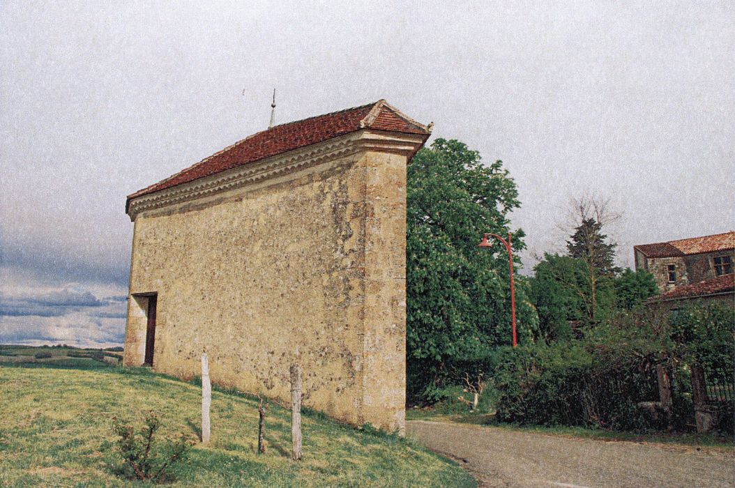 Cette construction à la fois originale et pittoresque remonte vraisemblablement au 19ème siècle. On lui attribue traditionnellement l'appellation de pigeonnier-octroi. Conçu selon un plan triangulaire, son rôle d'octroi très inhabituel ainsi que la subtilité du traitement de sa maçonnerie le distinguent des autres pigeonniers du Gers. Il présente également deux têtes de terre cuite en partie basse des arêtiers. Enfin, une fontaine-lavoir ainsi qu'un ancien bassin achèvent de compléter l'ensemble.