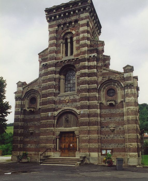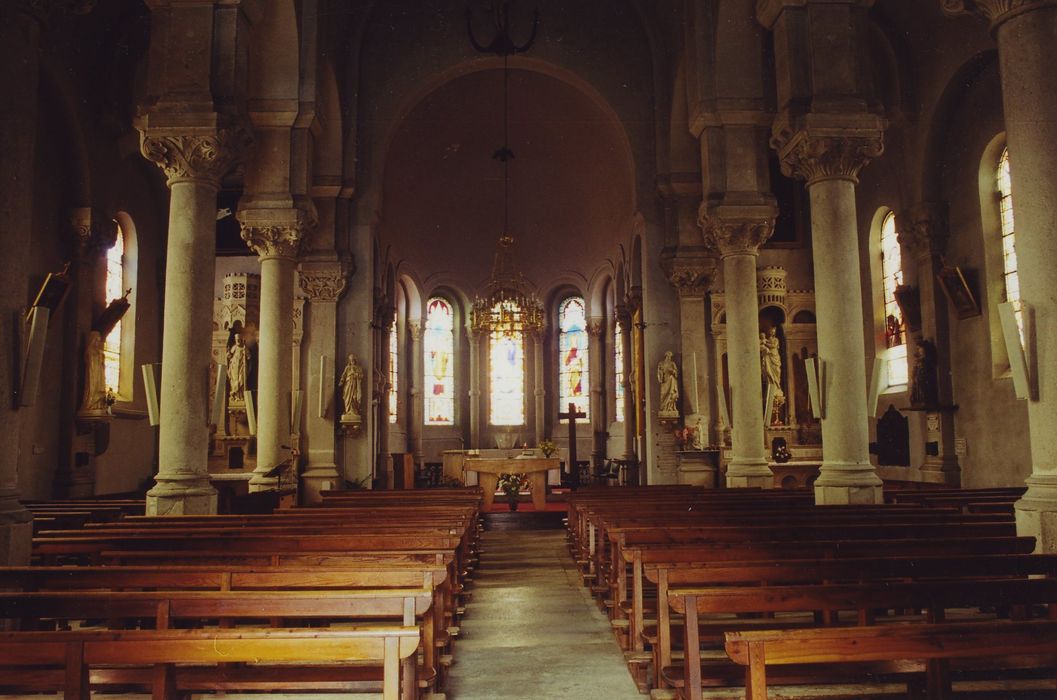 L'église néo-romane, édifiée par l'architecte A. Leroux au 19e siècle, possède un chevet polygonal, une nef à deux bas-côtés et un clocher évoquant une architecture défensive médiévale par sa forme carrée et la présence de faux machicoulis. A l'intérieur, présence d'un décor sculpté riche (chapiteaux, tribune, autels...) et d'un ensemble de vitraux.