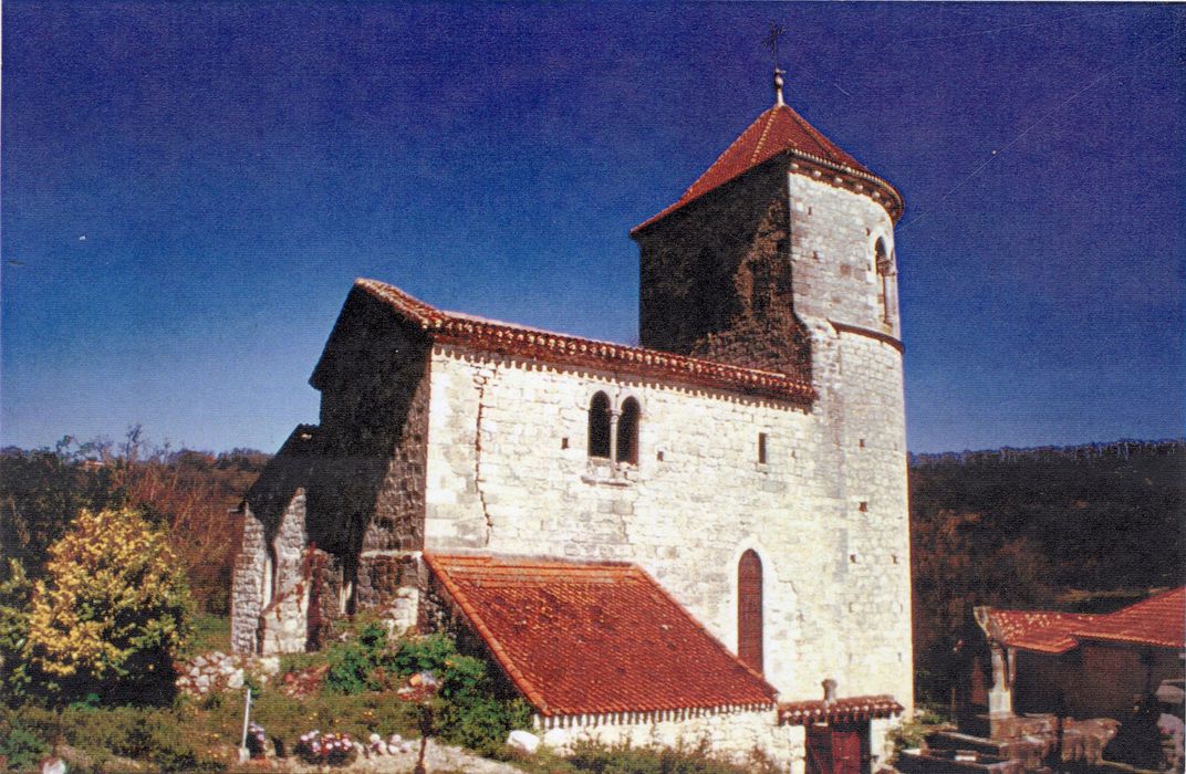 Eglise romane, remaniée et agrandie au 15e siècle, attenante à un logis épiscopal disparu (résidence des évêques d'Agen). Clocher transformé en tour de défense pendant les guerres de religion. Les voûtes de l'église, partiellement remaniée au cours des années 1880, se sont effondrées en 1971.