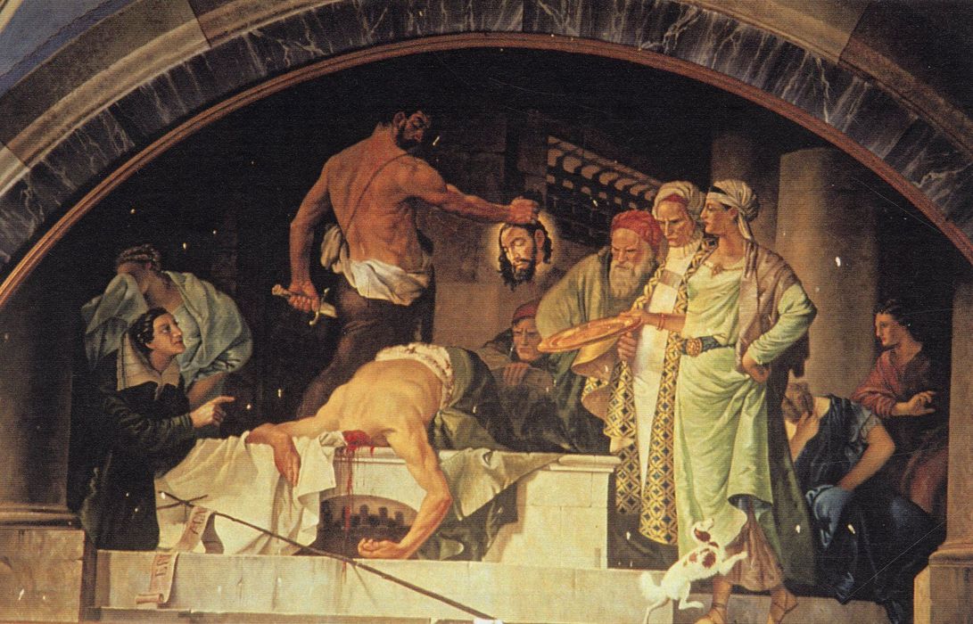 L'église, reconstruite à la fin du 17e siècle, sur un plan à trois nefs et choeur à chevet plat, a été voûtée en 1880 en brique plâtre sur croisée d'ogives reçues sur de gros culots, en remplacement des lambris peints d'origine, à l'exemple de la chapelle Saint-Benoît à Marmande. Les clefs sculptées rappellent cette construction et cette transformation. Cette dernière a condamné un important décor liturgique décrit dans un document épiscopal du 20 août 1689, dont il reste un grand tableau de la Décollation de Saint-Jean-Baptiste, inscrit à l'Inventaire supplémentaire en 1975. La particularité de cette église est de ne pas posséder de clocher en propre. La proximité immédiate d'une ancienne porte de la ville, convertie à cet effet, a remédié à cette absence. L'église a été l'objet dans les années trente d'une grande campagne de décoration qui a intéressé aussi bien la vitrerie des collatéraux due à l'atelier Thomas à Valence (Drôme) que la surface des principaux murs. Un peintre d'origine italienne, Carlo Masutti, qui a oeuvré dans d'autres églises du département, a exécuté en 1936 la peinture qui orne le choeur consacrée à la Décollation de Saint-Jean-Baptiste et le décor de draperies et de faux-marbres du choeur et des arcades de la nef.