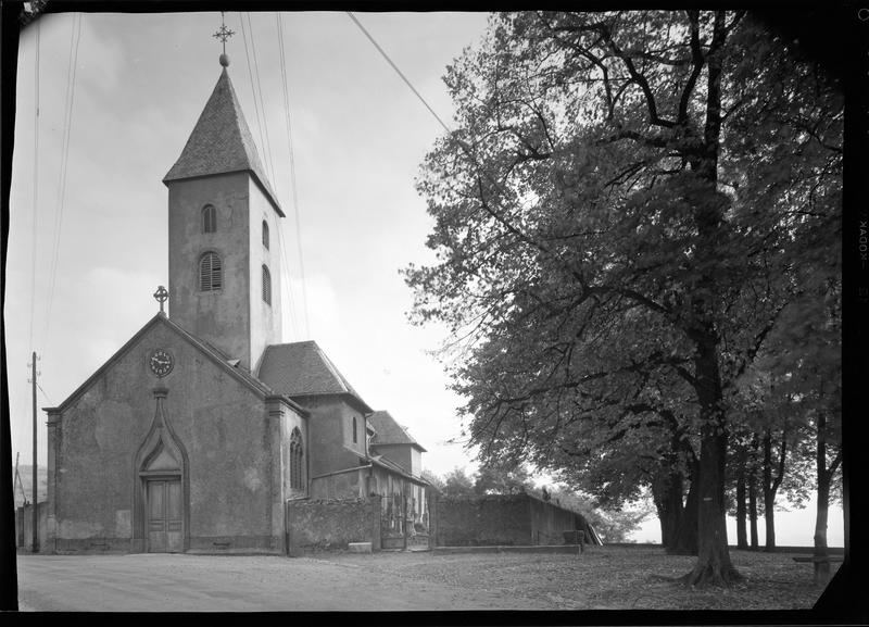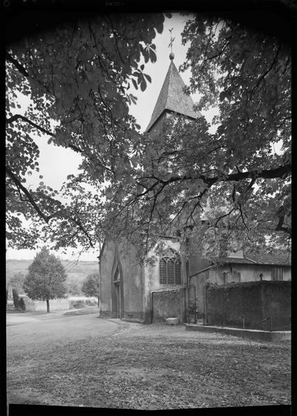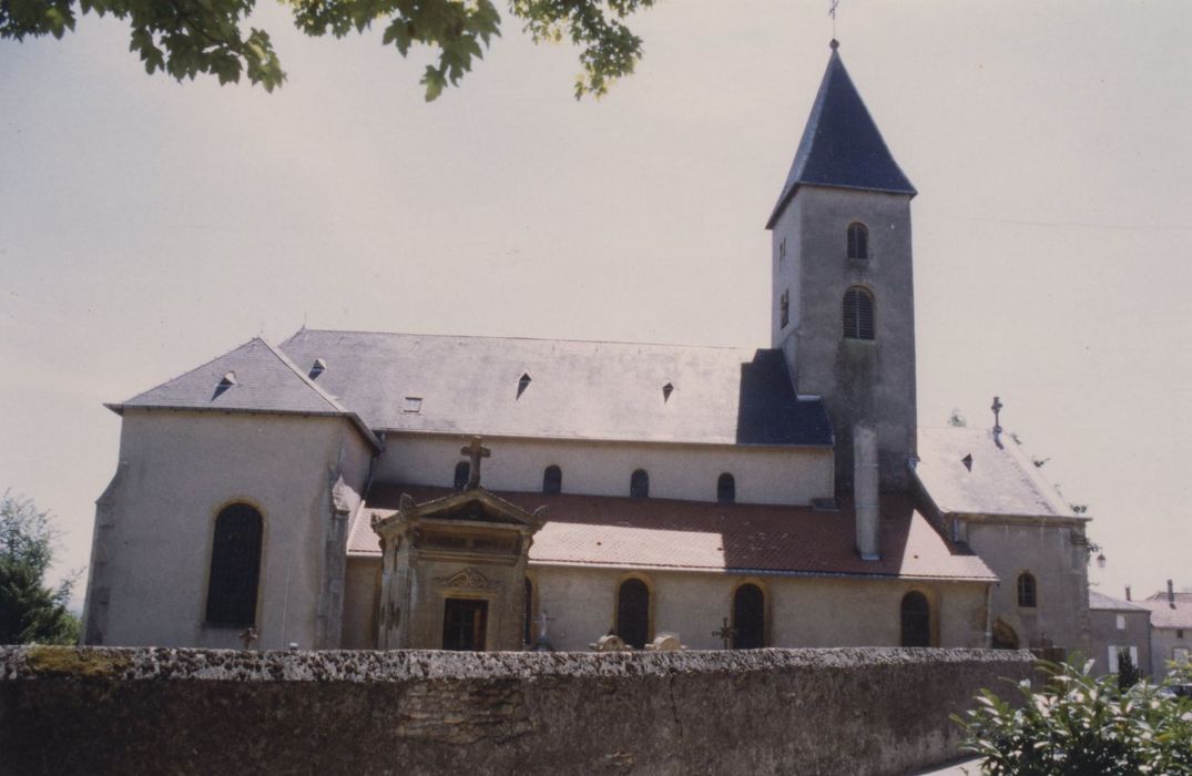 Eglise achevée à la fin du 11e siècle ou au début du 12e siècle (travée d'avant-nef avec tour-porche axiale, nef flanquée de collatéraux). Elle comprend un porche de deux travées de la fin du 15e siècle, remanié au 19e siècle. Choeur flanqué de deux chapelles voûtées sur croisées d'ogives (fin 15e). Au 19e siècle, construction d'une sacristie.