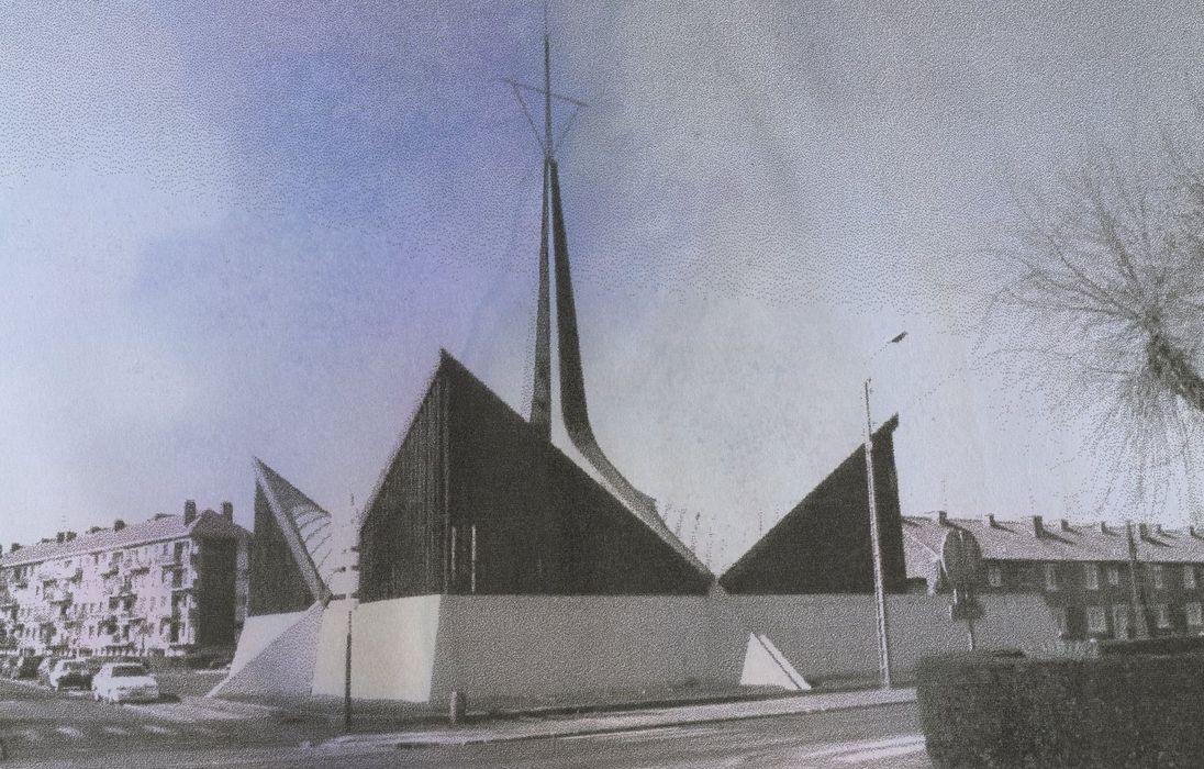 L'archevêché de Cambrai fait appel en 1964 à l'architecte Guillaume Gillet, dont la notoriété se fonde alors sur la réalisation toute récente de l'église Notre-Dame de Royan (1954-1958). La pose de la première pierre de la chapelle de Vieux-Condé a lieu le 5 juillet 1964 après quatre années passées à récolter les fonds nécessaires à la réalisation de cette construction par un comité local. Le chantier a été achevé en 1968. Le bâtiment sinscrit dans un plan carré dont lun des angles est réservé au chur. Le clocher surplombe lédifice en son centre. Au-dessus des murs de béton peint en blanc, lélévation alterne rondins de bois verticaux et vitres colorées. La chapelle a été rétrocédée à la commune en 1994.