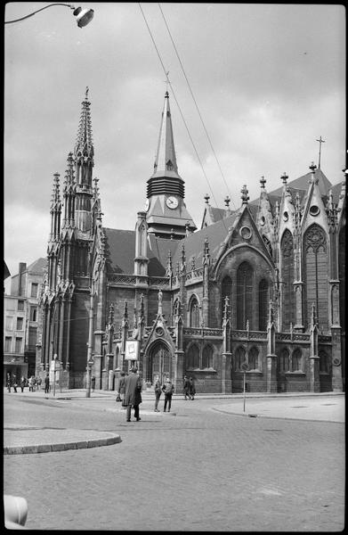 Cette église est le plus ancien édifice de la ville. En remplacement d'une église romane, on construisit au 15e siècle un édifice gothique à trois nefs, du type des hallekerques. Il fut doté ensuite d'une tour de façade, laissée inachevée en 1571. Au 19e siècle, l'essor de la ville dû à l'industrie textile, rendit nécessaire l'agrandissement de l'édifice. Les travaux, confiés à l'architecte Charles Leroy, introducteur du style néo-gothique dans le département, commencèrent en 1848 et s'achevèrent vers 1859. L'ancienne église disparaissait alors presque totalement sous l'oeuvre néo-gothique de type flamboyant. Les murs latéraux furent cassés pour la construction de deux nefs supplémentaires, et le choeur refait. De l'édifice original n'est conservé que la tour de façade et quelques colonnes de la nef. Le chantier mené de 1968 à 1978, permit la restauration intérieure de l'édifice ainsi que son réaménagement, qui s'accompagnait de la suppression du décor néo-gothique. L'édifice de plan rectangulaire est composé d'une avant-nef, de nef dotée de bas-côtés doubles et d'un chevet éhcelonné. La tour de la façade est entourée de deux portails à décor néo-gothique. Les façades latérales sont surmontées d'un garde-corps ajouré décoré de pinacles et s'ouvrent par des portails monumentaux à décor néo-gothique. Les vitraux du choeur sont l'oeuvre de Lusson et ceux des chapelles latérales de Claudius Lavergne.