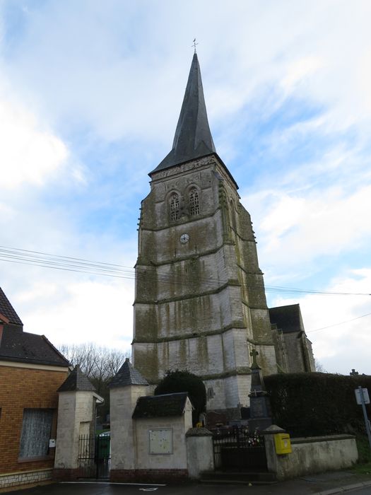 Eglise de style flamboyant tardif, reconstruite au 17e siècle sur les ruines de l'ancienne église. On note la disposition défensive du clocher-porche, édifié vers 1630.