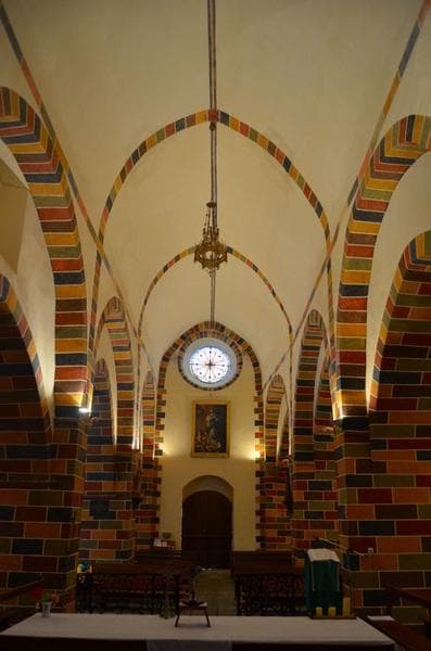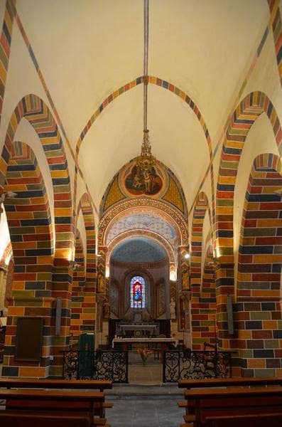 Chevet couvert d'une voûte en cul-de-four d'époque romane. Nef et bas-côtés voûtés en berceau brisé d'époque gothique. Reconstruction du clocher au 19e siècle. A l'intérieur, présence de plusieurs campagnes de décors peints : dans le choeur et les chapelles, peintures polychromes médiévales recouvertes d'un décor du 19e siècle ; dans la nef et les bas-côtés, faux appareils des 17e et 18e siècles, recouverts au 19e siècle.