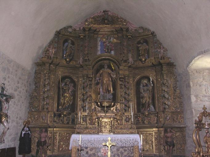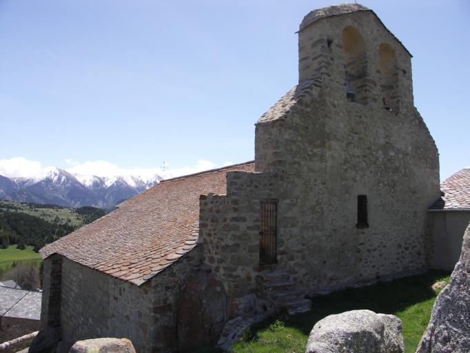 La première mention du lieu date de 942, avec un petit habitat groupé et une église. Une fortification apparaît en 1267. Le village aurait été déplacé au 12e siècle depuis une ancienne église vers l'emplacement actuel où ont été construits une nouvelle église (1200) et des fortifications. Les vestiges des fortifications sont encore visibles, ainsi que la tour cylindrique avec meurtrières en partie haute. Les restes de la muraille médiévale ne sont pas très visibles, hormis la haute porte d'entrée dans la façade sud du presbytère. L'église de plan rectangulaire se compose d'une nef unique et d'un chevet plat ayant remplacé une abside circulaire. Le mur sud conserve trois meurtrières bouchées, témoins de la fortification de l'édifice. Un clocher mur supporte la partie occidentale de la nef.