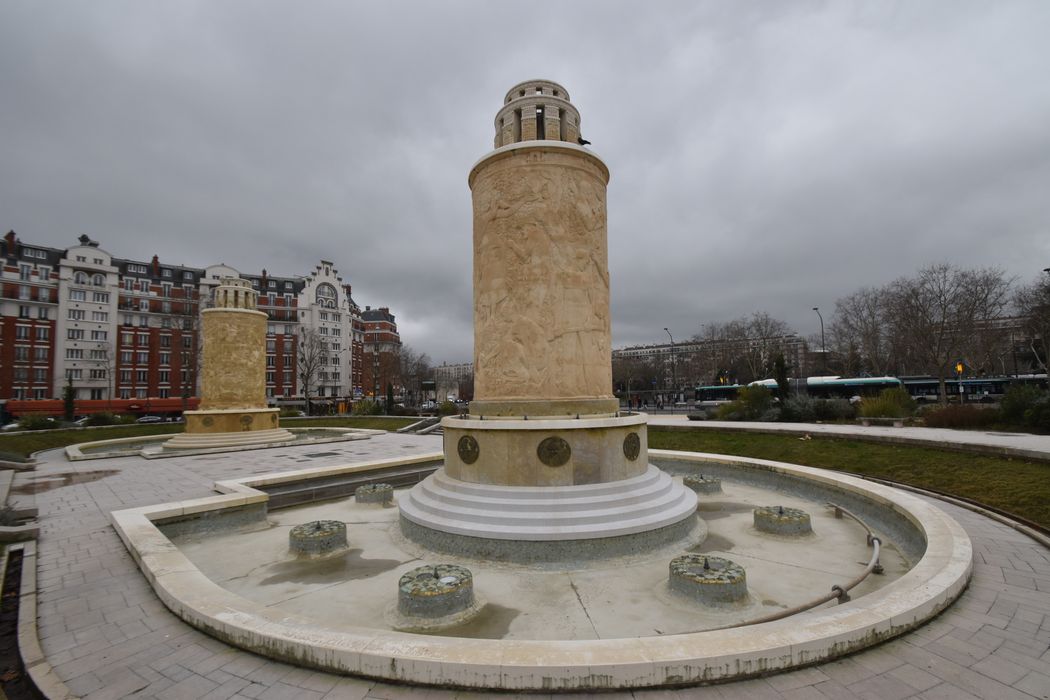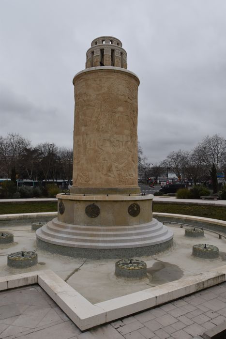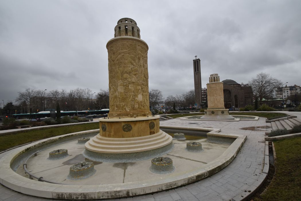 Les fontaines, leurs bassins et la totalité du terre-plein elliptique qui les entoure, y compris les salles souterraines abritant les dispositifs techniques situés sur l'espace public (non cadastré), tels que délimités par un liséré rouge sur le plan annexé à l'arrêté : inscription par arrêté du 30 mai 2016
