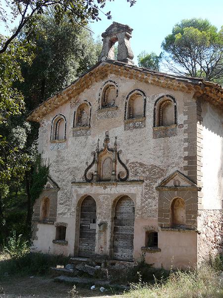 Chapelle rurale, isolée, de plan rectangulaire à pans coupés au chevet. On y accède par un chemin de procession bordé d'oratoires. Intérieur (arc triomphal) décoré de coquillages et de scories dessinant des rinceaux, des vases ... L'utilisation de coquillages dans un décor religieux est exceptionnelle.