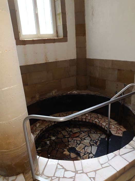 Bain attesté dès 1821, date à laquelle il fait fonction d'annexe thermale au bain de Dames. Reconstruction en 1843 sur un projet de l'architecte Grillot. Le bâtiment, de plan rectangulaire, est construit en pierre de taille de grès. Le sous-sol, à fonction originelle d'hypocauste, a conservé sa structure originelle : il est cloisonné de dalles de grès verticales délimitant quatre vaisseaux de trois travées qui portent le dallage du rez-de-chaussée. Dans le mur du fond du rez-de-chaussée, apparaît le béton romain en élévation. Dans les première et troisième travées du vaisseau gauche, sont creusés deux bassins circulaires en pierre de taille aujourd'hui revêtus de marbre.