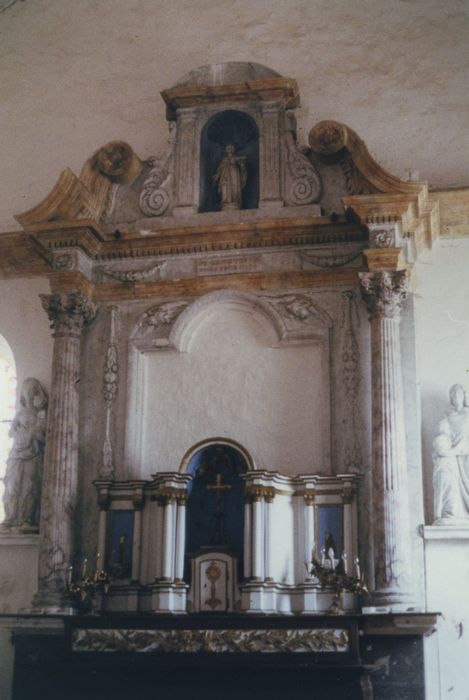 Edifice de plan barlong complété par une sacristie. Le choeur, à chevet plat, est orné d'un retable du début du 18e siècle. Présence de peintures murales visibles ou encore sous badigeon. Sur le mur nord apparaît un "Dit des trois morts et des trois vifs".