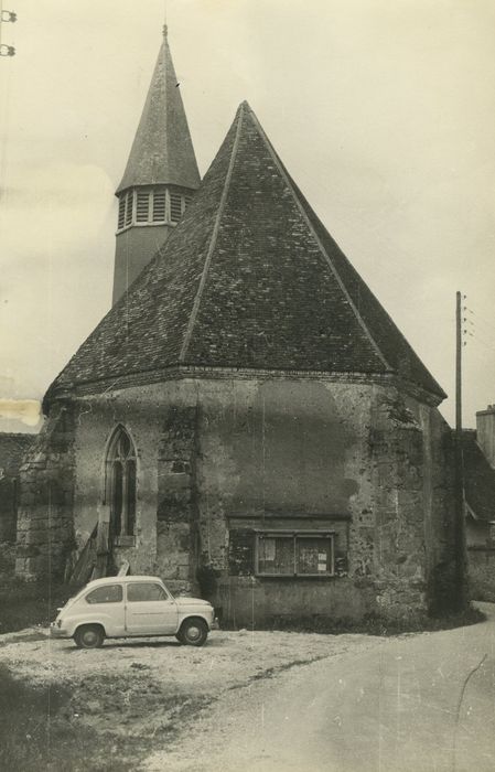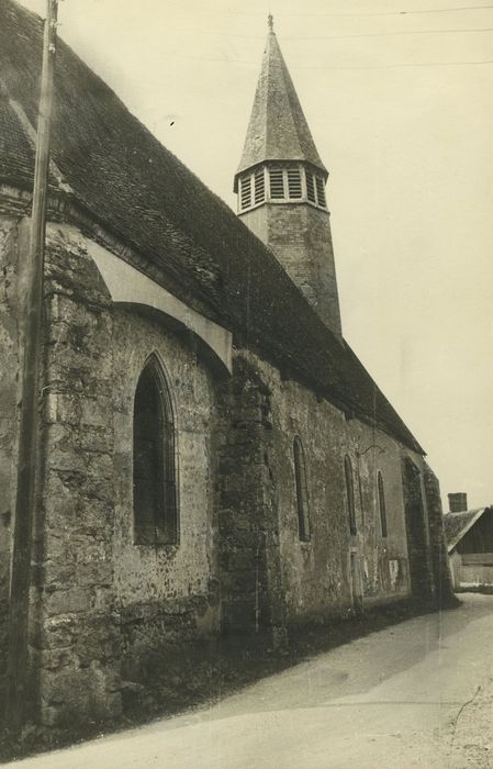 La fondation d'un lieu de culte chrétien remonte peut-être au 9e siècle. L'église du 13e siècle était enclose dans l'enceinte du château, tous deux détruits au cours de la guerre de Cent ans. L'édifice actuel date du 15e siècle. Abattu par un orage au 16e siècle, le clocher est reconstruit en 1835. L'église présente un unique vaisseau se terminant par un chevet à trois pans. Elle s'ouvre par un portail orné de voussures en ogive provenant de l'abbaye de Fontainejean. Une poutre de gloire portant trois statues des 15e-16e siècles, sépare la nef du choeur. Les murs s'ornent d'un décor peint daté du 19e siècle.