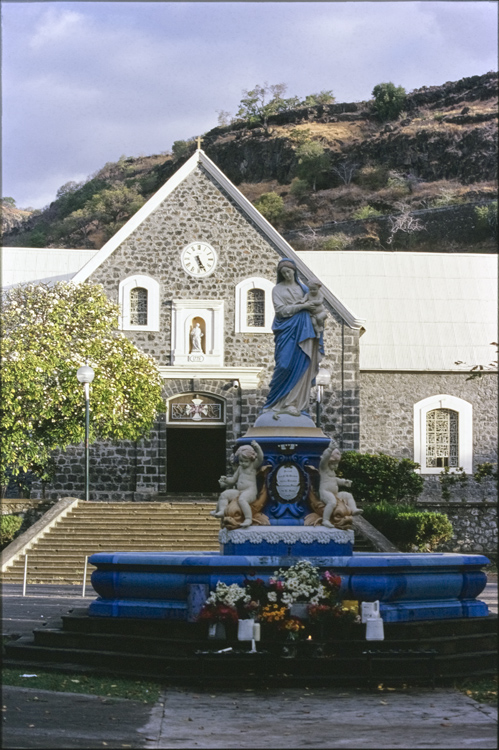 A la suite de la destruction d'une première église située dans le quartier des Sables, en 1689, une nouvelle chapelle est édifiée plus à l'est. Elle est construite sur un plan en croix latine. Au nord, se dresse le clocher, structure métallique sur socle maçonné, tandis qu'un cimetière s'ouvre au sud. En 1703, elle devient église paroissiale. L'église en bois est, peu de temps après, remplacée par « un édifice en pierre de lave taillées ». Les travaux seront dirigés par Pierre Hybon et Jacques Auber. En 1754, l'église est dotée d'un presbytère. Plusieurs fois modifiée et restaurée (incendies), l'église actuelle se trouve seulement privée de son clocheton, non restitué après l'incendie de 1905. Le plafond actuel, en lattes de bois, date de 1910.