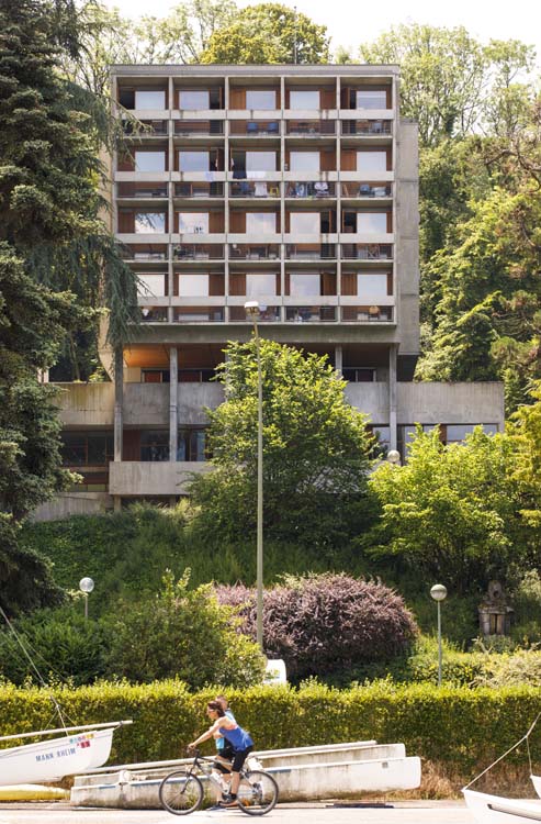 La MJC Les Marquisats représente la deuxième tranche de construction du complexe « Centre International de Jeunesse Les Marquisats », édifié par André Wogenscky de 1962 à 1965. Ce projet initial répondait à une double préoccupation : le respect du site et la création d’un ensemble harmonieux permettant le libre accomplissement des multiples activités. La MJC construite par André Wogenscky (1ere tranche-1962/1965) et Louis Miquel (2e tranche-1971/1975), constitue une plate-forme sur laquelle peuvent se greffer des bâtiments en hauteur, perpendiculaires au bâtiment central et au lac. Ce bâtiment est donc en accord parfait avec la résidence des Marquisats, construite également par Wogenscky. Il révèle l’influence directe des architectes – tous deux élèves de Le Corbusier – et fait partie des quelques réalisations de qualité dont la ville se dote à cette époque. En effet, on retrouve dans ce projet les cinq points d’une architecture nouvelle chers à Le Corbusier : les pilotis, le plan libre, la toiture-terrasse, la façade libre et les fenêtres en bandeau. En 1993, la Maison des Jeunes et de la Culture est reconvertie en école d’art et accueille l’école municipale des Beaux-Arts. De 1995 à 1998, elle est restructurée en un complexe musical « Le Brise-Glace » réalisé par l’atelier Akeos représenté par les architectes Henri Montulé et Jean-Marc Salomon qui prennent le parti de respecter et conserver les anciens locaux qui illustrent bien l’architecture brutaliste de l’époque.