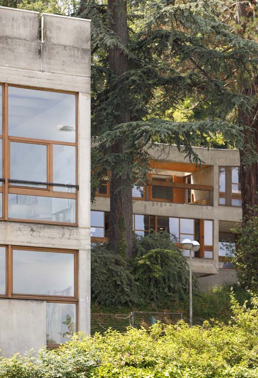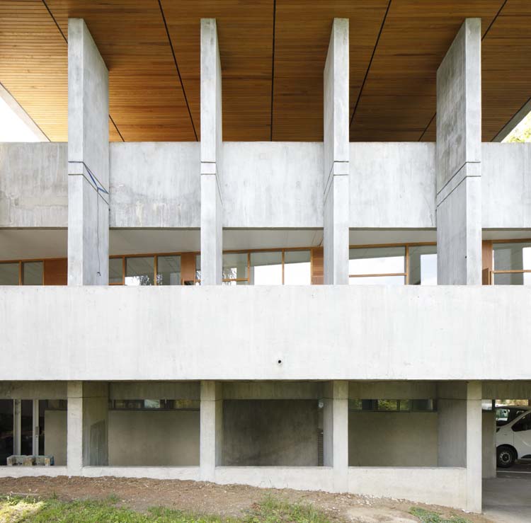 La construction se compose d’un volume simple couvert d’une toiture-terrasse et éclairé par des fenêtres-bandeaux très larges. Les façades sont entièrement réalisées en béton brut de décoffrage mais rehaussées de leur grisaille par l’œuvre de l’artiste néo-zélandais Bill Culbert « Rouge, bleu, jaune ».