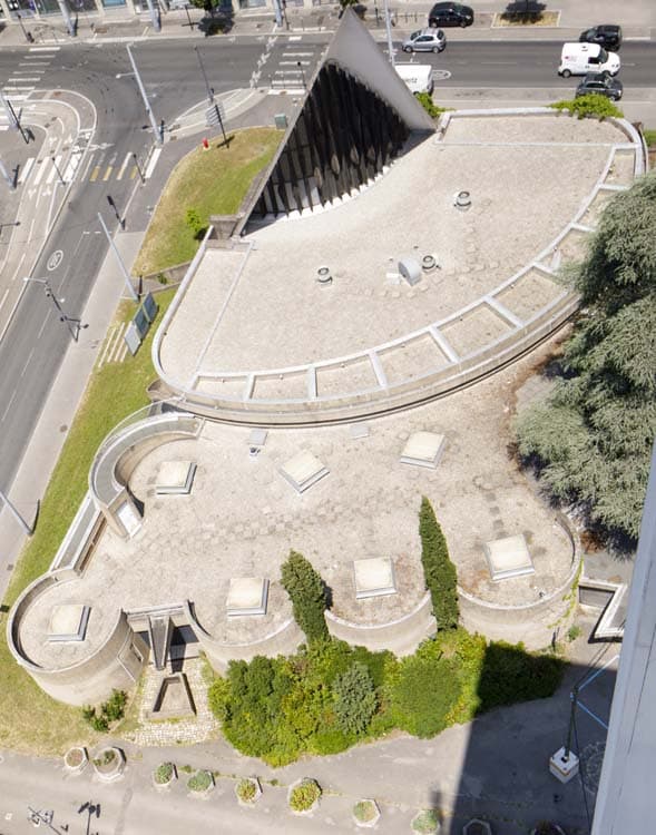 Église Notre-Dame de Balmont (actuel cinéma Duchère), Église Notre-Dame-du-Monde-entier, tour panoramique, château d'eau, résidence Les Érables