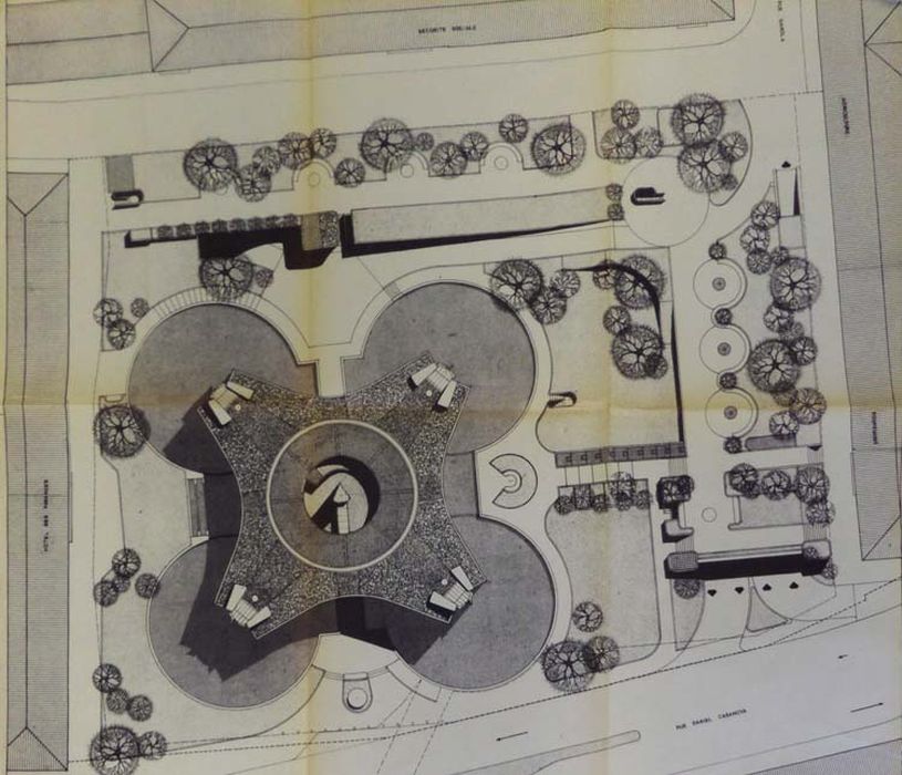 La cité administrative de Chartres, réalisée en 1958 par l'architecte départemental Jean Maunoury, est située à proximité de la gare et de la cathédrale : elle forme un vaste ensemble de bureaux accueillant les services départementaux de l'Assurance maladie, de l'Éducation nationale et de l'URSSAF. La forte croissance démographique et économique connue après-guerre par l'Eure-et-Loir impose la modernisation et l'extension des services préfectoraux, dont la relocalisation dans un nouveau bâtiment à construire au sein de la cité administrative est décidée. Au début des années 1970, dans un souci de modernisation et d’extension la décision est prise de construire un nouveau bâtiment au sein de la cité administrative. Les architectes parisiens Daniel Badani et Pierre Roux-Dorlut, déjà auteurs de la préfecture du nouveau département du Val-de-Marne (Créteil), sont chargés de la conception du nouvel immeuble, en association avec Dominique Maunoury.