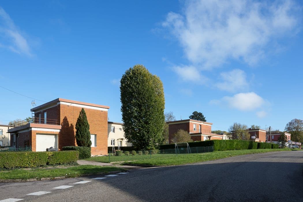 Ensemble formé par les cités ouvrières de Bataville avec ses équipements sociaux : parc, stade, piscine, église, à l'exclusion de l'usine