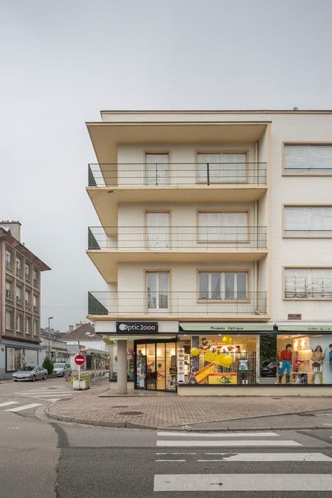 de béton, par les balcons et par la bande de commerces du rez-de-chaussée protégée par un
