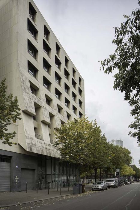 parisien, conditionné par les règles d’urbanisme de la ZAC de Bercy, le geste architectural se fait