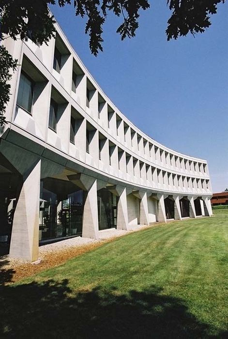 Lors de la première tranche, en 1967, sont réalisés les bureaux et l'usine de fabrication. Le même module préfabriqué en béton est utilisé pour les deux bâtiments qui présentent des variantes relatives à leur fonction. L'usine se réduit à un parallélépipède austère ne comportant qu’un étage. A l’instar de l’immeuble abritant les services du Department of housing and urban development à Washington, édifié par Breuer en 1968, le bâtiment des bureaux, qui s’élève sur deux étages, est construit sur pilotis et présente une façade concave. Au cours de la deuxième tranche en 1975, le bâtiment de l'usine est doublé vers l'ouest. L'utilisation du même module de façade que celui à l’œuvre pour les premiers bâtiments assure l'unité de l'ensemble. Cinq petits bâtiments supplémentaires, abritant notamment une centrale et la loge du concierge, complètent cette deuxième phase. Enfin, la dernière tranche en 1983, voit l'édification d'un nouveau hangar et d'un bâtiment d'expédition en métal, greffés au nord-ouest du bâtiment initial de production. au nord de celle-ci.