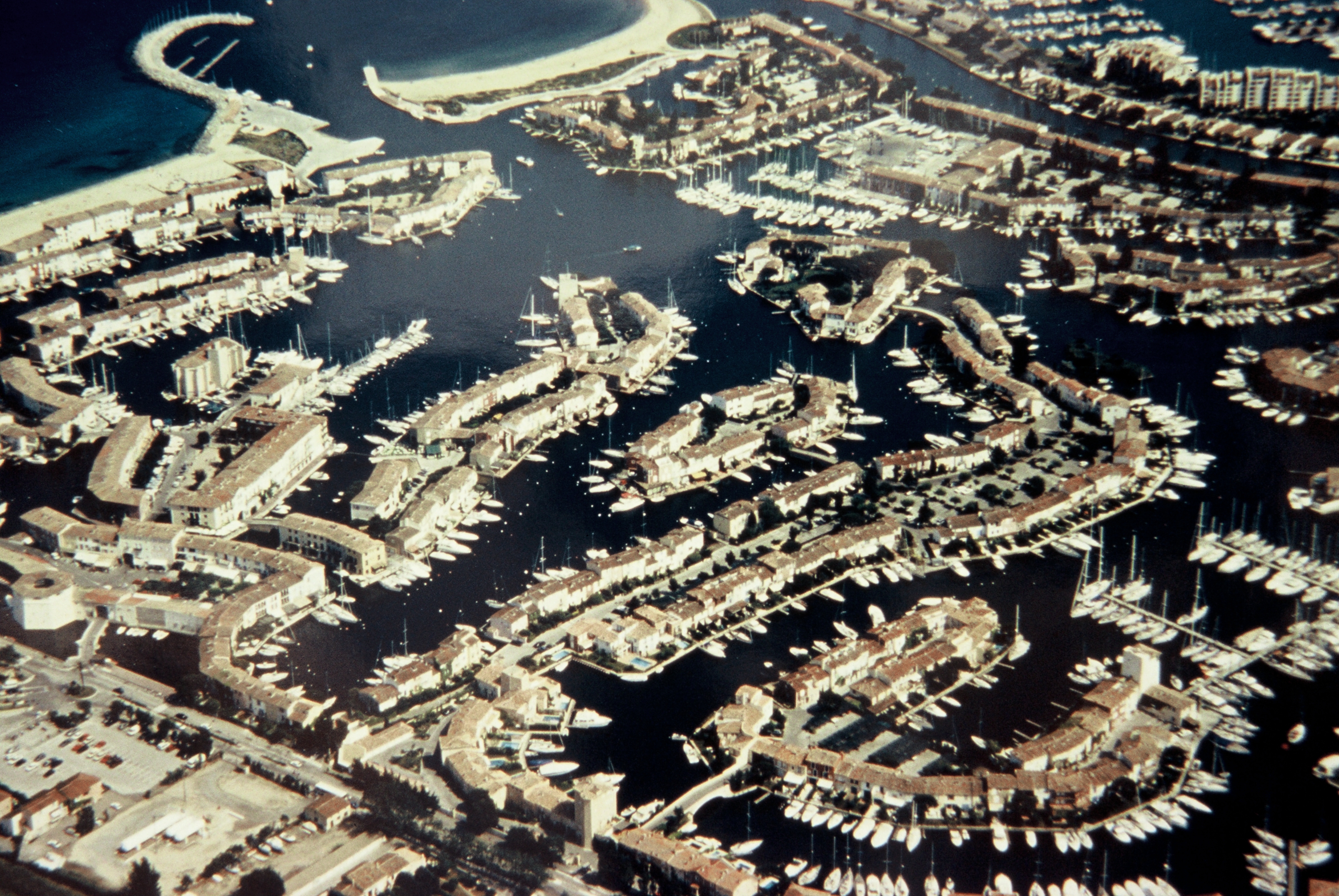 Promoteur, maître d’œuvre et d’ouvrage de cette cité lacustre initiée en 1962, l’architecte mulhousien François Spoerry réalise ici son œuvre maîtresse, celle qui cristallise ses convictions souvent contenues sur l’urbanisme et l’architecture comme ses aspirations de marin averti. Dans une période de création de marinas et de stations balnéaires rivalisant d’audace, l’originalité du projet tient dans la volonté d’établir une relation de proximité systématique entre la résidence secondaire, la mer et le bateau mais aussi, dans l’écriture architecturale imprégnée de références littérales au passé et l’architecture vernaculaire. Le marécage en bordure de rivage au fond du Golfe de Saint-Tropez est ainsi creusé de canaux sinueux. Les îles et étroites bandes de terre qui en résultent, reçoivent des petites plages et les linéaires de maisons types à façade pignon, accolées en continue en bordure de quais. Dans ce contexte, la présence de la voiture est limitée en faveur de la circulation piétonnière sur quais et par canots. Bien qu’attentif à préserver l’homogénéité de l’ensemble, l’architecte tente de recréer l'« aimable désordre » des villages comme la cohérence de leurs équipements structurants centralisés : église, maison commune, place du marché bordée de commerces et de petits immeubles collectifs. Dans ce dédale, arcades, portes monumentales, encorbellements ou détails insolites sont autant de repères ou de freins à la monotonie des parcours.