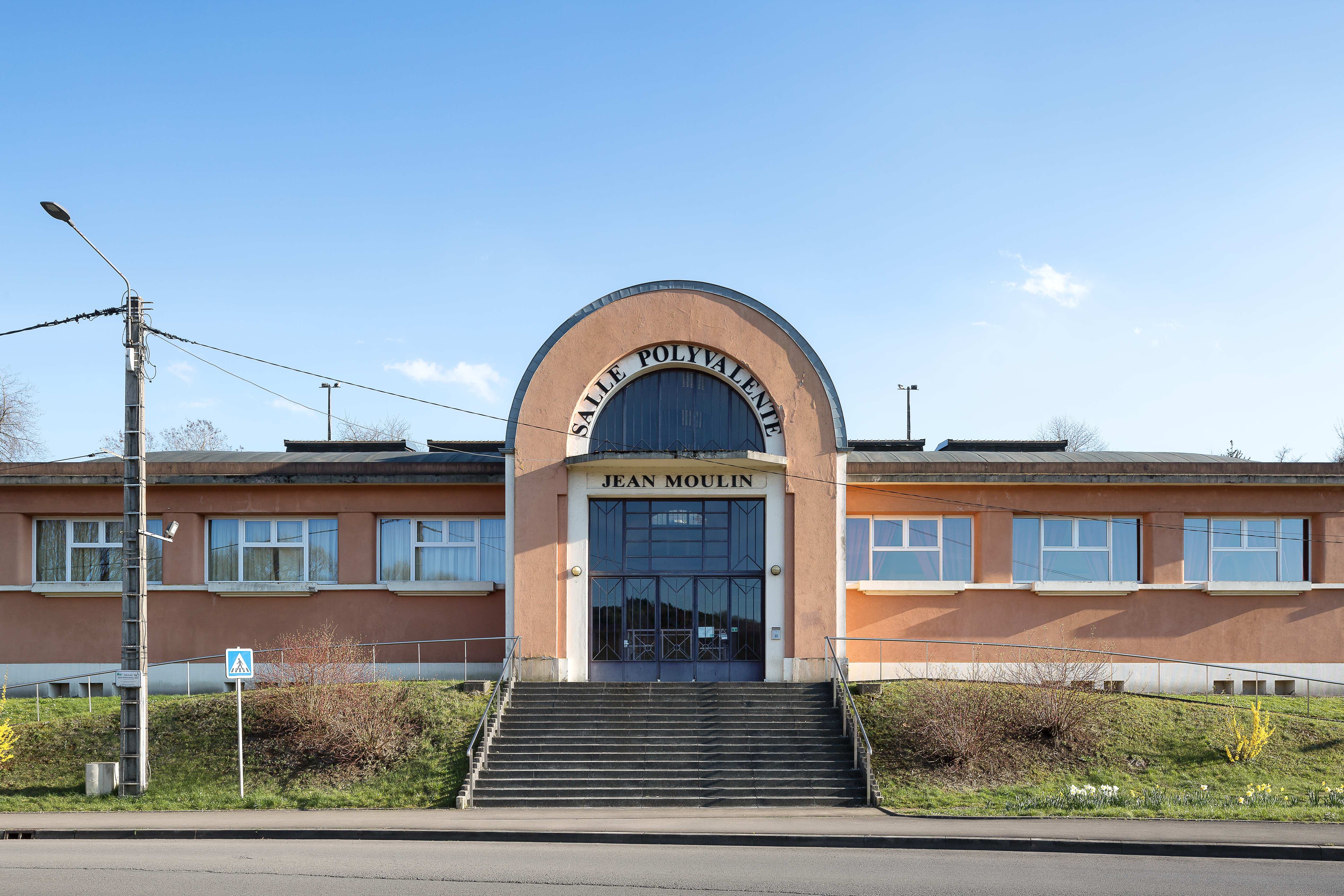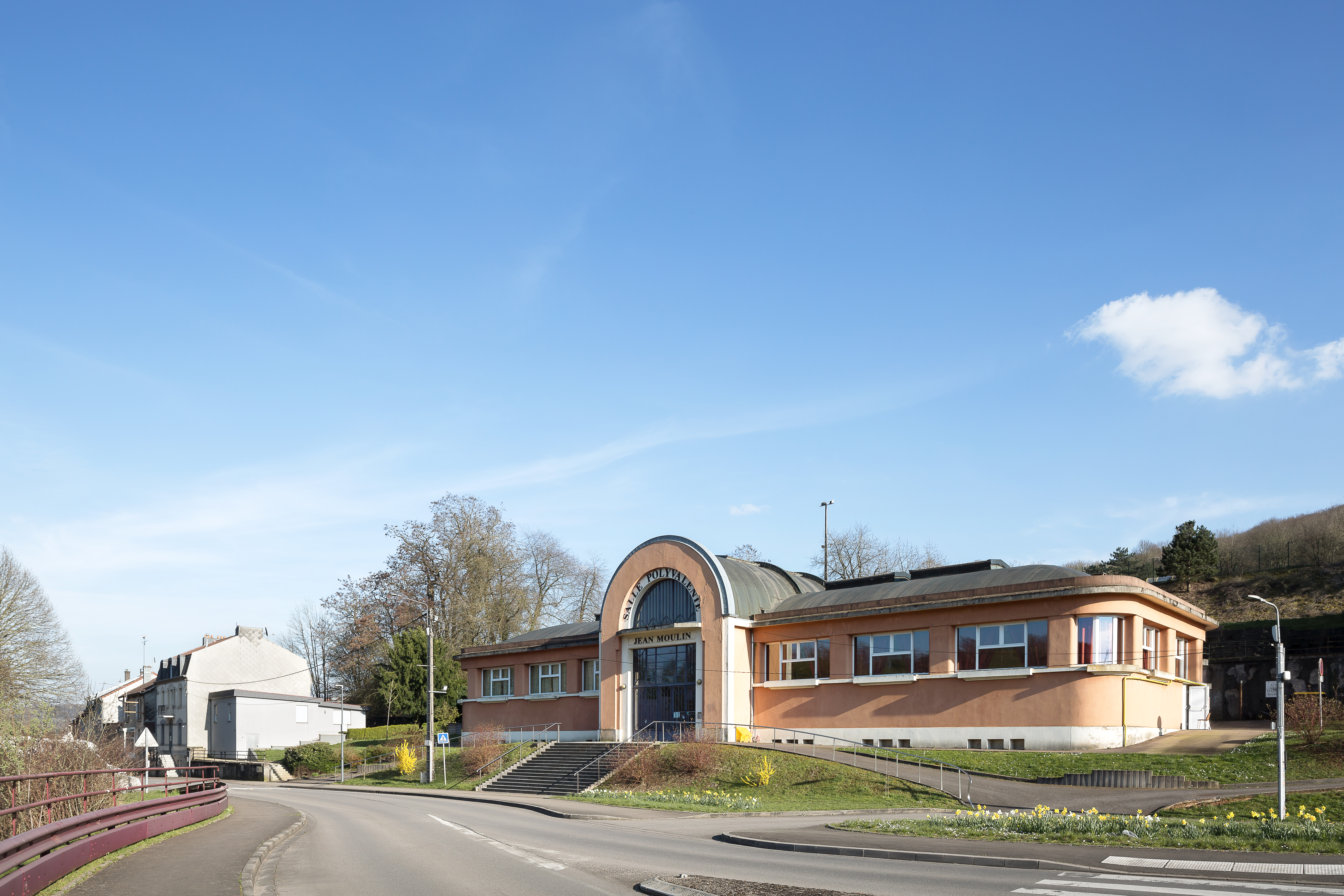 Salle Jean-Moulin (ancien bains-douches de l'usine de Micheville) et stade Brandenburger