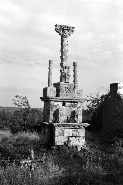 Calvaire provenant de la chapelle saint Corentin ; très dégradé en 1794, il devait comporter à l'origine un grand nombre de personnages ; porte la date 1519.