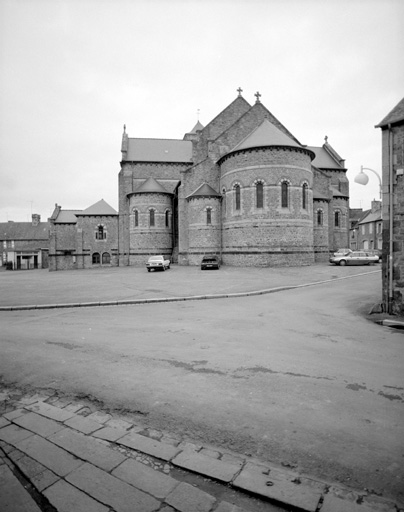 . Plan en croix latine, à file de coupoles sur pendentifs, chevet arrondi, style néo-roman.