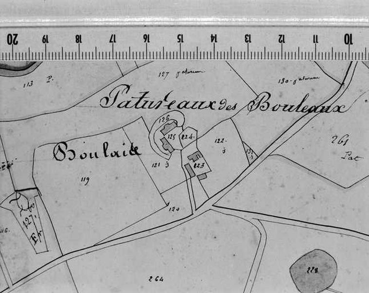 Ferme 16e siècle bâtie à l'emplacement d'une motte circulaire disparue ; il reste une cheminée ancienne ; bâtiments remaniés et reconstruits au 19e siècle