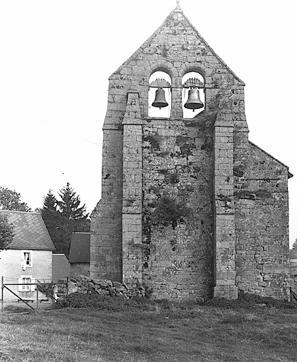 clocher mur à deux baies,chevet plat,portail limousin