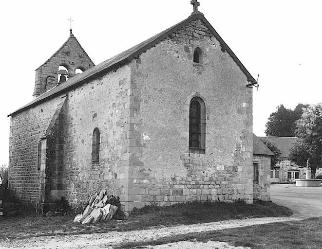 Eglise datant du 13e siècle ? ; patronage appartenant à la commanderie de chevaliers de Malte de Féniers ; d'après un procès verbal de 1616 : était peu vaste ; à cette même époque fut saccagée par les soldats protestants de la garnison de Peyrat ; 1827 : Jean Lavaleix, adjudicataire de la construction de la sacristie, et des réparations de la couverture ; 1837, 1838 : travaux de reconstruction de la sacristie, et de la voûte, exécutés par le sieur Roby ; 1859 : incendie détériorant l'église ; 1860 : travaux divers (construction d'une voûte en brique) confiés à Jean Justin Gourdy