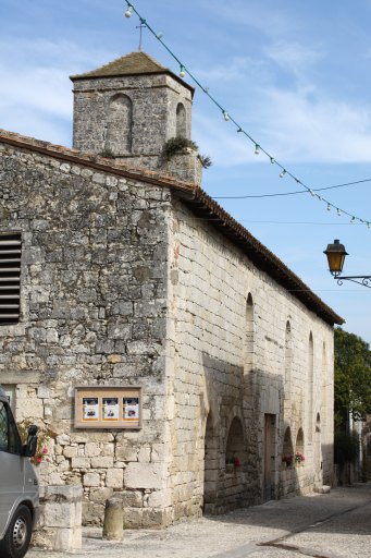L'église est située au coeur du quartier du ««castet vielh»«. De plan allongée, elle ne comporte qu'un vaisseau. A ce rectangle irrégulier est accolé, à l'est, un clocher dont la base est semi-circulaire et surmontée d'une élévation à pans coupés. Au sud et au nord de ce clocher sont accolées deux tourelles de plan circulaire. La tourelle nord est pleine tandis que celle située au sud abrite un escalier en vis permettant d'accéder aux niveaux supérieurs. Au rez-de-chaussée, le clocher abrite une chapelle voûtée en cul-de-four qui a servi de sacristie à l'époque gothique. Deux chapelles ont été aménagées au nord de la nef. Dans le mur gouttereau sud de l'édifice s'ouvrent une série d'enfeux ainsi que plusieurs fenêtres simplement trilobées et très ébrasées. Les portes percées dans ce mur sont les témoins de remaniements postérieurs à la période d'édification de l'église. Celle-ci est bâtie en moyen appareil de pierres de taille calcaire. Le toit à longs pans est couvert de tuiles creuses. Le toit du clocher, à pans coupés, est couvert de tuiles plates.