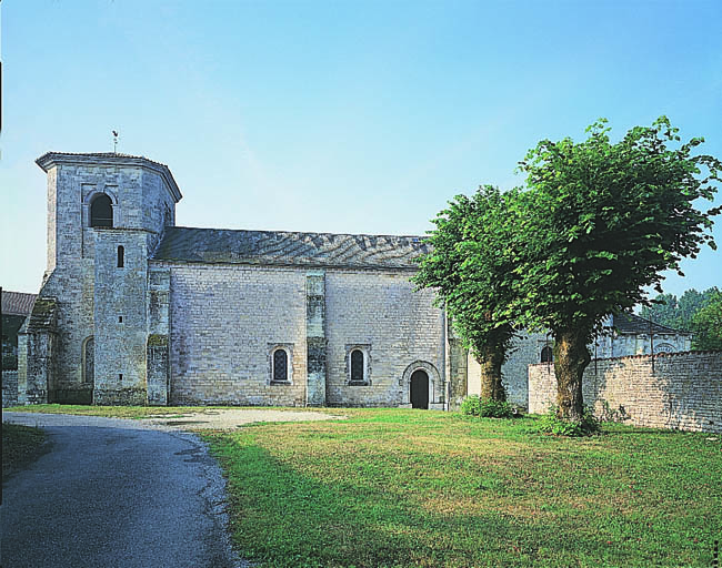 La sacristie est un vestige de l'église du 12e siècle (?). Logis peut-être 15e siècle. Clocher de 1787. Nouvelle église construite en 1867 par Gaschtofte architecte à Ruffec. Peintures exécutées de 1944 à 1946 par Louis Mazetier.