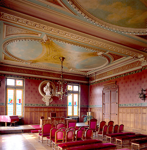 Pour construction de la mairie, concours public ouvert en 1889 : 33 projets présentés. Mairie édifiée en 1890 par Pierre Mathieu, architecte au Perreux, sur l'emplacement de l'ancien marché. Porte la date 1889