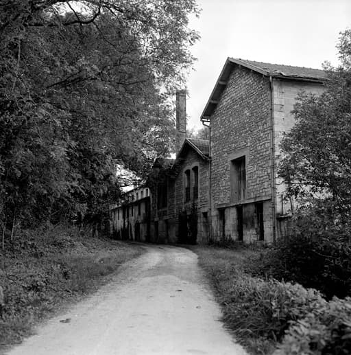 atelier de fabrication ; entrepôt industriel ; bâtiment d'eau ; pièce de séchage ; logement patronal ; logement d'ouvriers ; parc