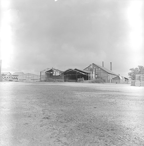 atelier de fabrication ; pièce de séchage ; aire des produits manufacturés ; hangar ; logement patronal ; pigeonnier ; cité ouvrière ; enclos ; four industriel ; forge ; maison ; écurie