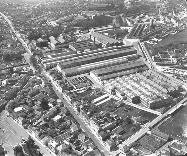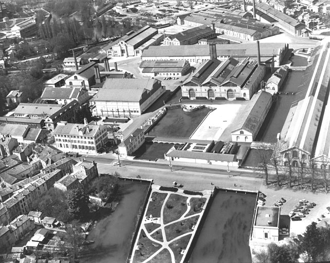 Site industriel desservi par embranchement ferroviaire ; les bâtiments des 18e et 19e siècles sont en moellon ou pierre de taille ; les ateliers du début du 20e siècle sont en pan de fer, les plus tardifs en pan de béton rempli de brique, avec charpente métallique apparente, couverts au début de tôle ondulée, remplacée plus tard par du ciment amiante ; les ateliers d'ajustage sont en béton avec shed ou toit bombé ; le bureau est à trois étages, l'école à un étage, et la plupart des autres bâtiments sont en rez-de-chaussée. Surface du site en m2 : 518000 ; surface bâtie en m2 : 120000