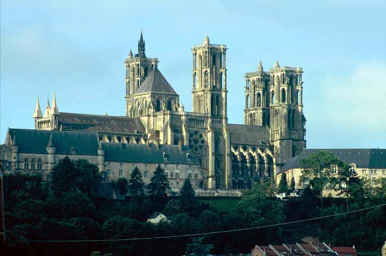Il ne reste rien d'apparent des édifices antérieurs à la cathédrale commencée sous l'épiscopat de Gauthier de Mortagne (1155-1174) ; il semble que l'on puisse distinguer quatre campagnes de travaux ; la 1ère, de 1155 à 1170 voit la construction du 1er choeur et des murs orientaux du transept la 2e, de 1170 à 1180 correspond à l'achèvement du transept, à l'amorce de ses tours, et aux 5 dernières travées de la nef ; la 3e, de 1180 à 1195 est la campagne d'achèvement de la nef suivi de la construction d'un seul jet de la façade occidentale et de ses tours ; la 4e de 1205 à 1220 voit la reconstruction et l'allongement du choeur, la mise en place de la voûte de la tour-lanterne, des arcs-boutants de la nef et l'élévation de la tour occidentale du transept sud, dite tour de l'Horloge ; son pendant au nord, la tour Saint-Paul, daterait du 2e quart du 13e siècle ; la chapelle dite des Fonts se rattacherait à la 4e campagne de construction (1218 : date dendrochronologique de la charpente) ainsi que la sacristie et la salle dite du Trésor ; la fin du 13e siècle et le 1er quart du 14e siècle voient l'installation de chapelles entre les arcs-boutants de la nef et du choeur, ainsi que la reconstruction de la façade du bras sud du transept, la même opération n'étant qu'ébauchée au nord ; le seul aménagement notable est par la suite l'installation de clôtures de pierre aux chapelles latérales, dans la 2e moitié du 16e siècle et dans le cours du 17e siècle ; une crypte pour enterrer les évêques fut ouverte en 1777 (porte la date) au milieu du sanctuaire avec accès derrière le maître autel ; en 1793 est abattue la flèche de la tour sud de la façade occidentale ; la restauration de l'édifice entreprise en 1853 par l'architecte des Monuments historiques Emile Boeswillwald dura jusqu'à la Première Guerre mondiale.