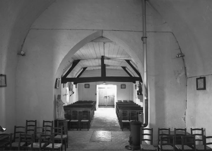 Choeur voûté en berceau brisé ; chapelle seigneuriale voûtée d'ogives sur culots ; nef couverte d'un lambris