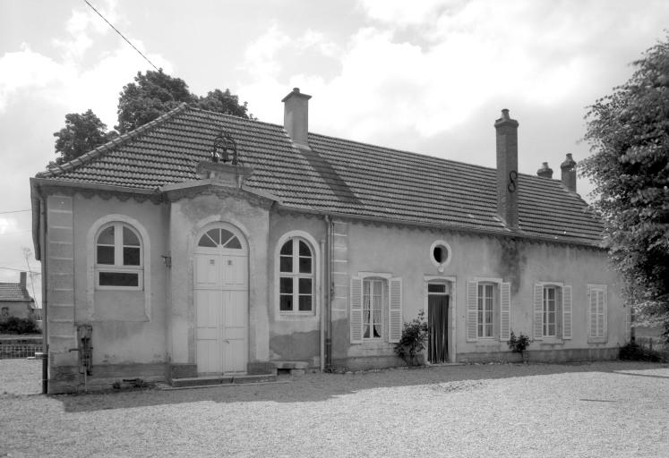 Edifice de plan en L constitué de deux corps de bâtiment : mairie dans le corps droit, école dans le corps gauche en retour d'équerre sur la façade postérieure