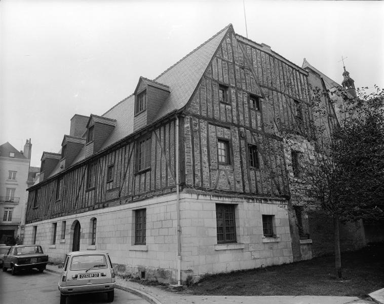Hôpital ou aumône du Saint-Esprit attesté en 1459 ; 1ère moitié 16e siècle : construction des bâtiments actuels sauf aile nord ; fonctionne comme hôpital jusqu'en 1624, puis location de la maison, du dortoir, du jardin et de la chapelle à des particuliers ; devient auberge en 1736 ; construction de l'aile nord au 18e siècle ; fin 1er quart 19e siècle : bâtiments inclus dans le pensionnat des dames du Sacré-Coeur-de-Jésus et de Marie ; construction ou remaniement de la chapelle ; vers 1975 : dégagement et restauration de l'ancien hôpital