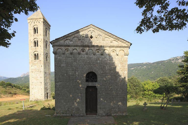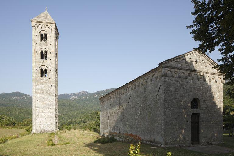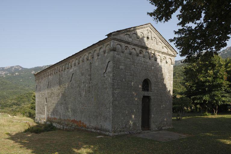 Eglise primitive du 6e ou 7e siècle. L'église actuelle, ancienne église pièvane, formait un ensemble cultuel avec l'église disparue San Quilico. D'après les travaux historiques, l'église actuelle a été élevée durant le premier quart du 12e siècle. Le clocher aurait été construit par l'architecte maestro Maternato, qui pourrait également avoir construit les deux églises. Le clocher a été restauré entièrement dans sa partie supérieure à la fin du 19e siècle. Eglise restaurée en 1983.