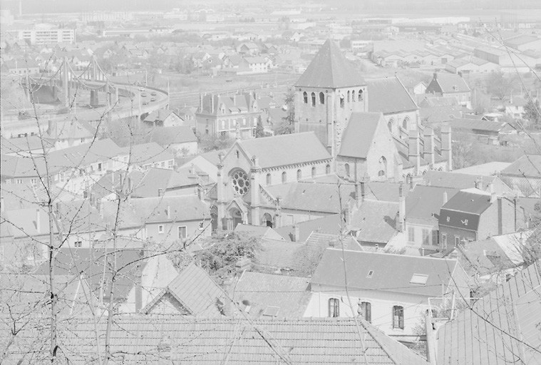 Eglise bâtie au 11e siècle ou au début du 12e siècle ; le choeur actuel à chevet plat, directement inspiré par l'architecture de la cathédrale, date du 4e quart du 12e siècle ; le mur goutterot du bas-côté nord fut sans doute reconstruit à la même époque ; l'édification du transept et du clocher fut entreprise vers 1200, mais ne fut jamais achevée ; le transept qui aurait dû être voûté comme le choeur, resta couvert d'un simple appentis au 15e siècle ; une charpente remplaça le toit en appentis du bras sud ; au 16e siècle, les deux bras du transept furent couverts d'une voûte basse ; le plafond et la toiture de la nef furent refaits en 1778-1779 (date dendrochronologique confirmée par les archives) par le maître charpentier Delgobe et le plafonneur Carlier ; la façade, autrefois précédée d'un porche, fut reconstruite de 1872 à 1877 par l'architecte départemental J. Touchard et le D. Deyrieu ; l'ensemble de l'église fut restauré entre 1890 et 1931.