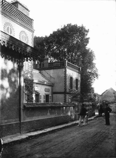 Petite maison de 3 travées construite au milieu du 19e siècle. Emile Zola l'achète en 1878 et fait aussitôt construire l'aile nord où prennent place cuisine, salle à manger et cabinet de travail. En 1885, il ajoute l'aile sud où se trouve la salle dite de billard. Zola augmente peu à peu le domaine le long de la Seine et dans l'île du Platais où il fait poser en 1880 le kiosque norvégien, chalet récupéré de l'exposition universelle de 1878. Il construit également le long de la rue une maison pour ses amis dit " Pavillon Charpentier ", et au bout du verger des communs et une serre. L'escalier de la petite maison d'origine a été remplacé, au début du 20e siècle, par un grand escalier occupant les pièces situées à droite en façade sur jardin