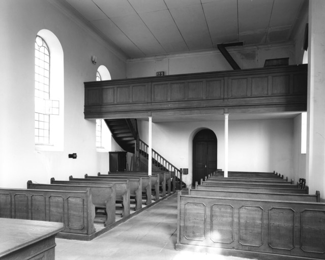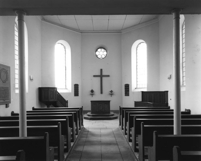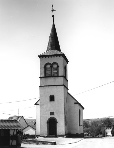 Temple construit en 1871 (date portée) en remplacement de l'ancienne église mixte ; inscription pieuse en allemand et date sur l'encadrement de la porte ; la base de l'ancien clocher semble avoir été conservée
