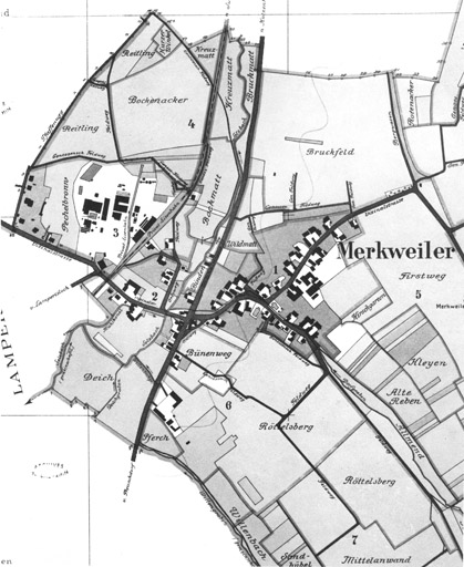 La commune de Merkwiller, avec Hoelschloch, a été créé en 1888 ; ces deux localités, dont le pétrole faisait la richesse, faisaient auparavant partie de la commune de Kutzenhausen ; en 1922, la commune prend la dénomination de Merkwiller-Pechelbronn